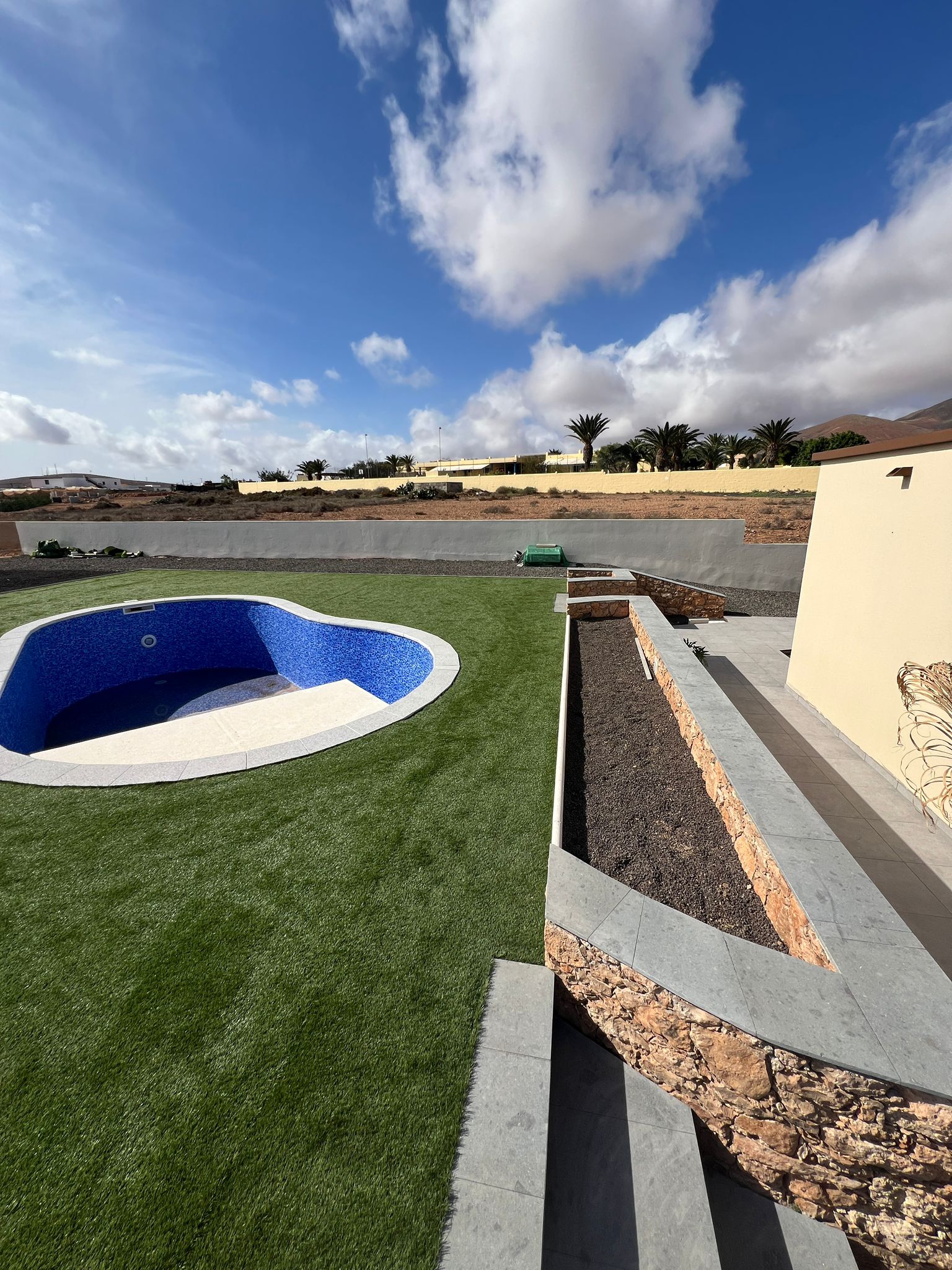 It is located one minute from the schools and the municipal swimming pool, in a very quiet area with little car traffic.