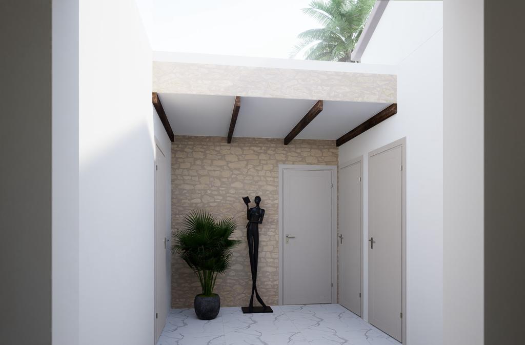 Consta de hall de entrada, amplio salón, cocina comedor, distribuidor amplio y muy luminoso, tres dormitorios, uno de ellos suite con baño privado y vestidor y un baño compartido.