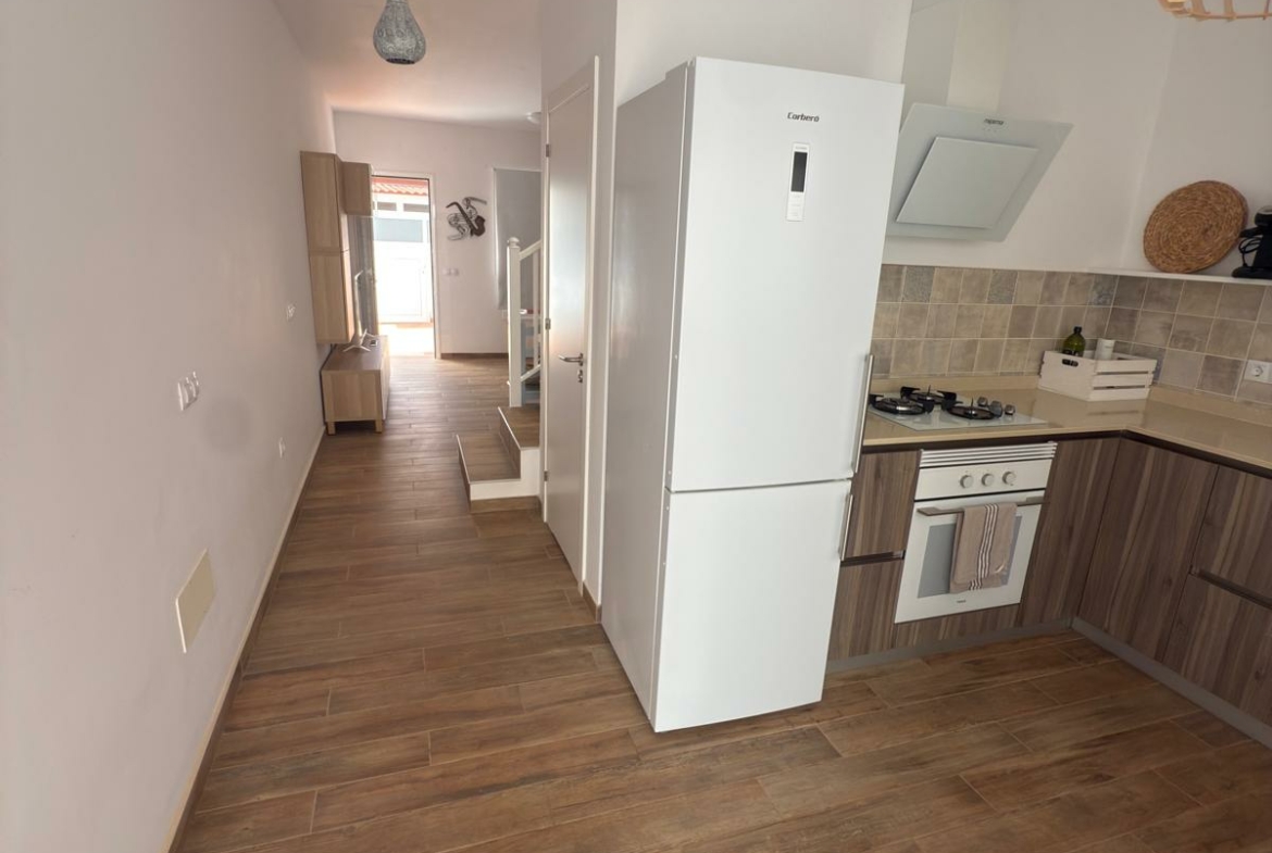 Al piano terra troviamo un ampio patio di ingresso, un luminoso salotto, un bagno di servizio, una cucina completa e un patio con lavatrice.