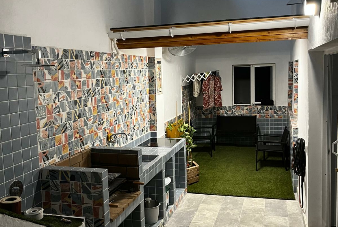 It features a private entrance, a 20m2 terrace with a built-in kitchen, barbecue, shower, and pergola.