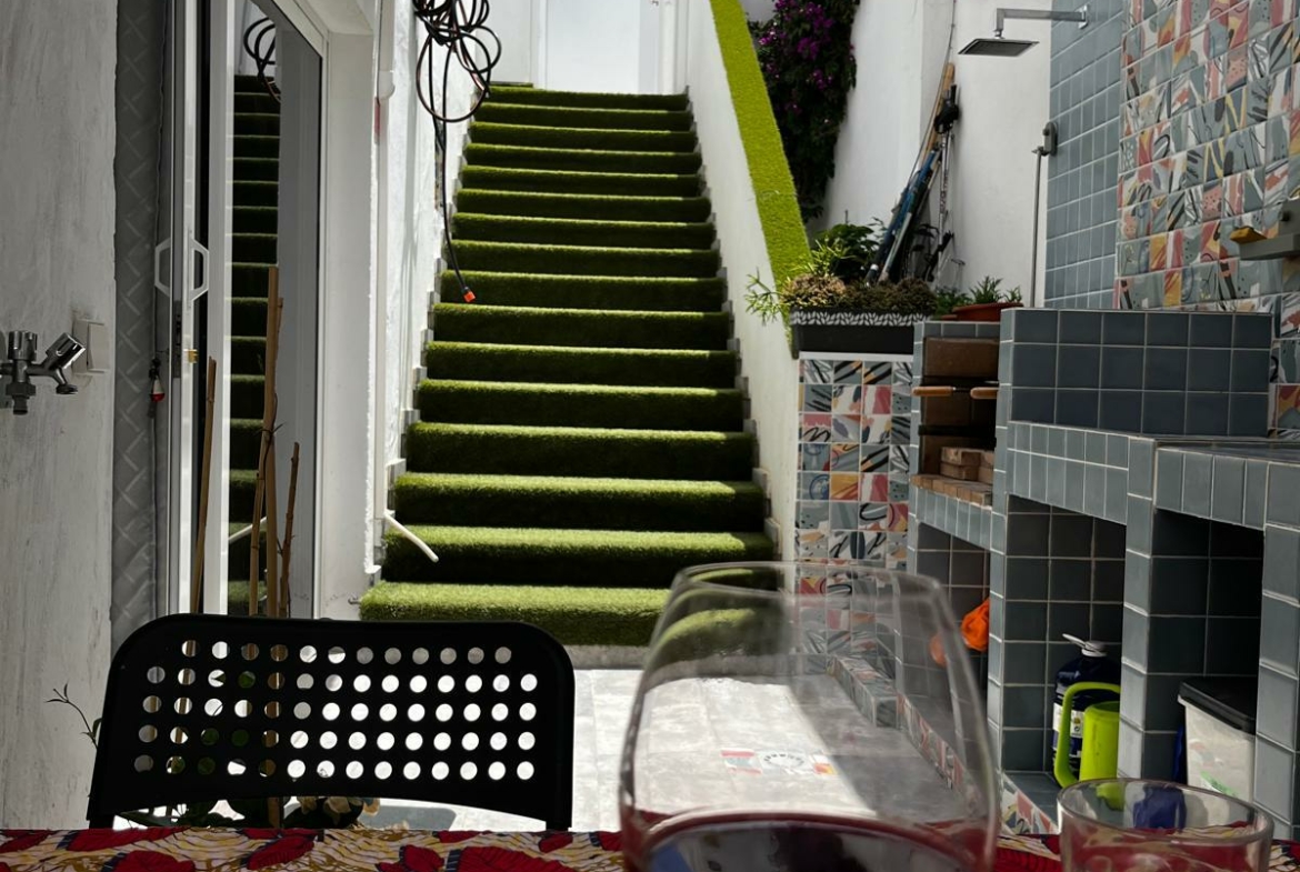Si compone di entrata indipendente , terrazza di 20 m2 con cucina in muratura, barbecue, doccia e pergola.